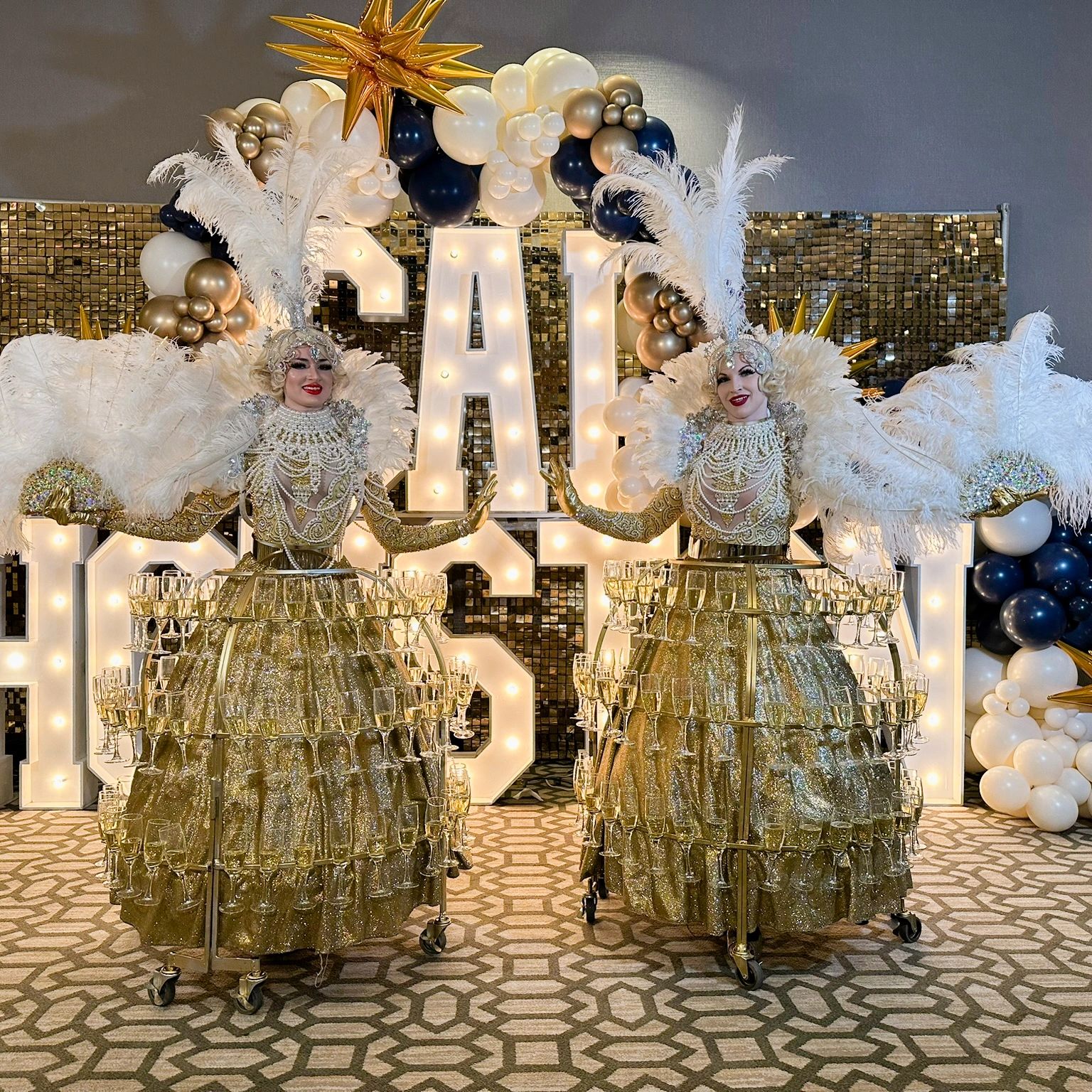 We specialize in luxury strolling champagne skirts—sophisticated, mobile beverage entertainment that adds a memorable, upscale touch to corporate galas, brand activations, high-end events and more.
